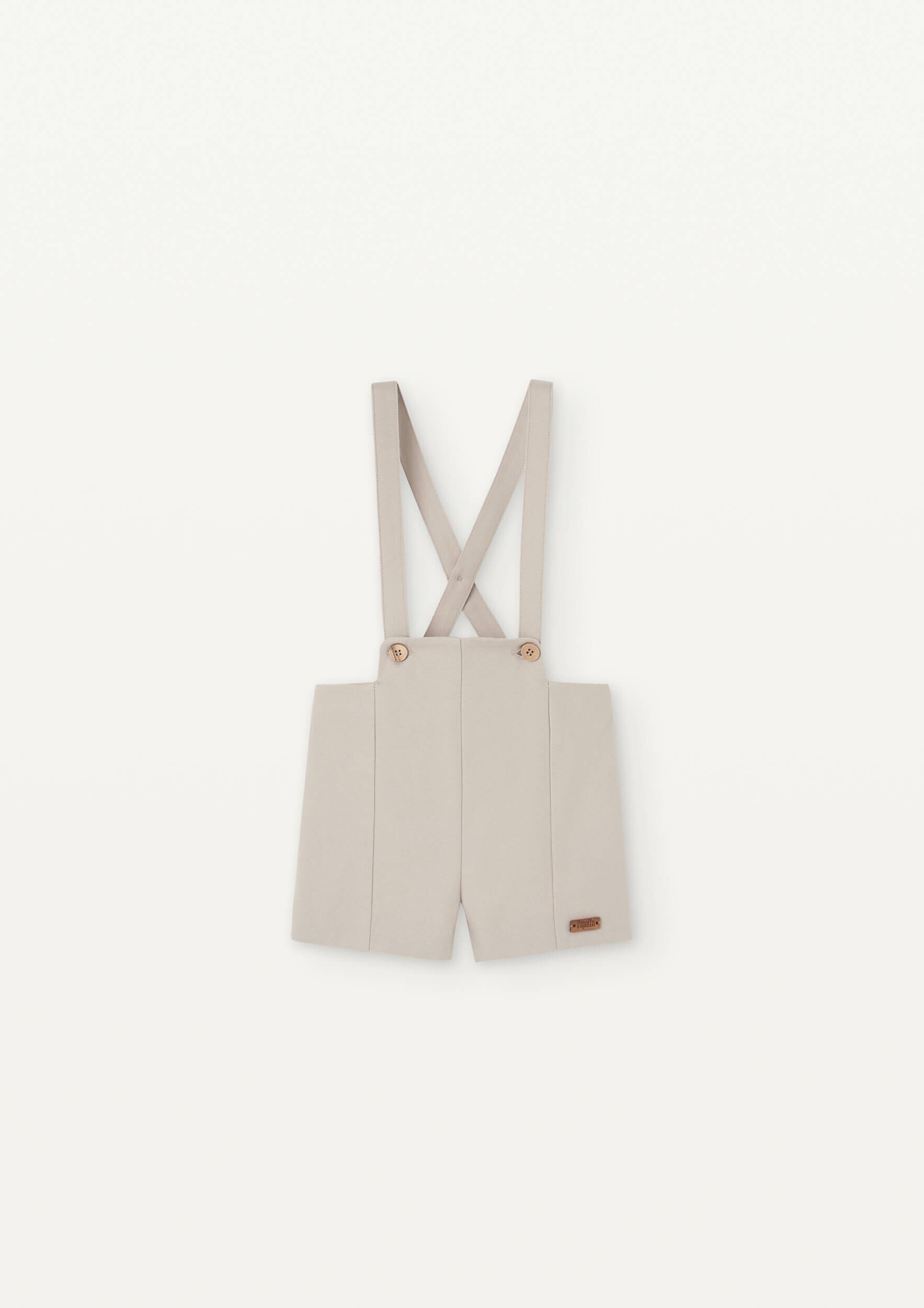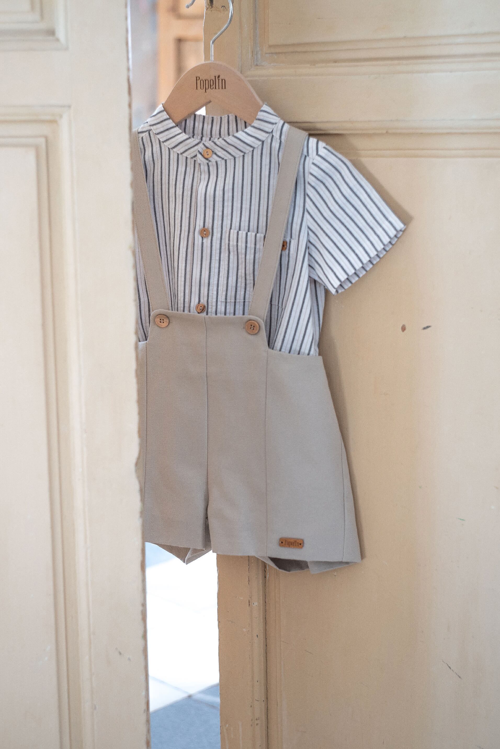 フロントに木製ボタンが付いたコントラストのあるダンガリー。