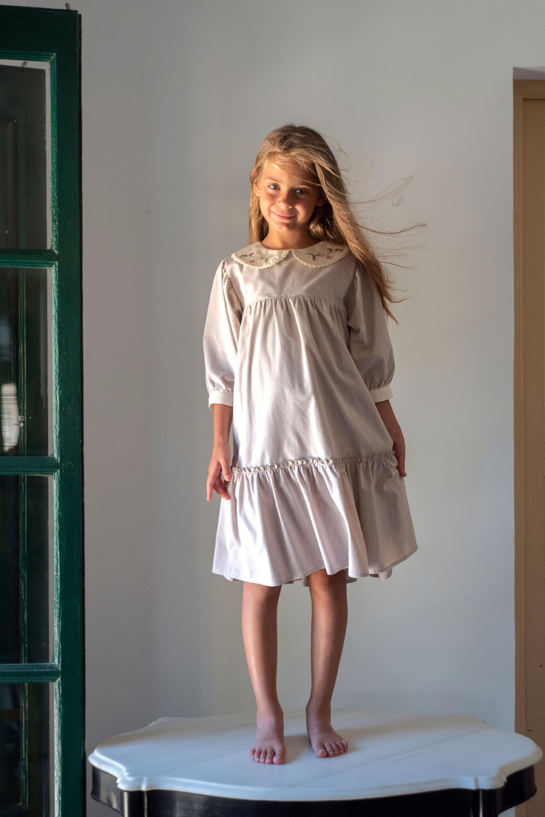 (送料無料)Popelin / Sand dress with embroidered baby collar