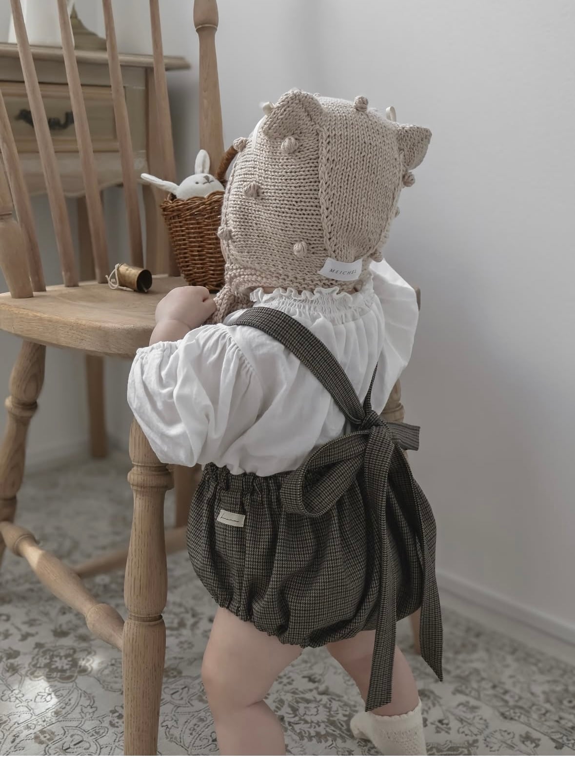 ブルーの混じった千鳥格子にアンティークな雰囲気のレースサスペンダーは調整、取り外し可能◎姉妹でも、姉弟でも楽しんでいただけるリンクアイテム。