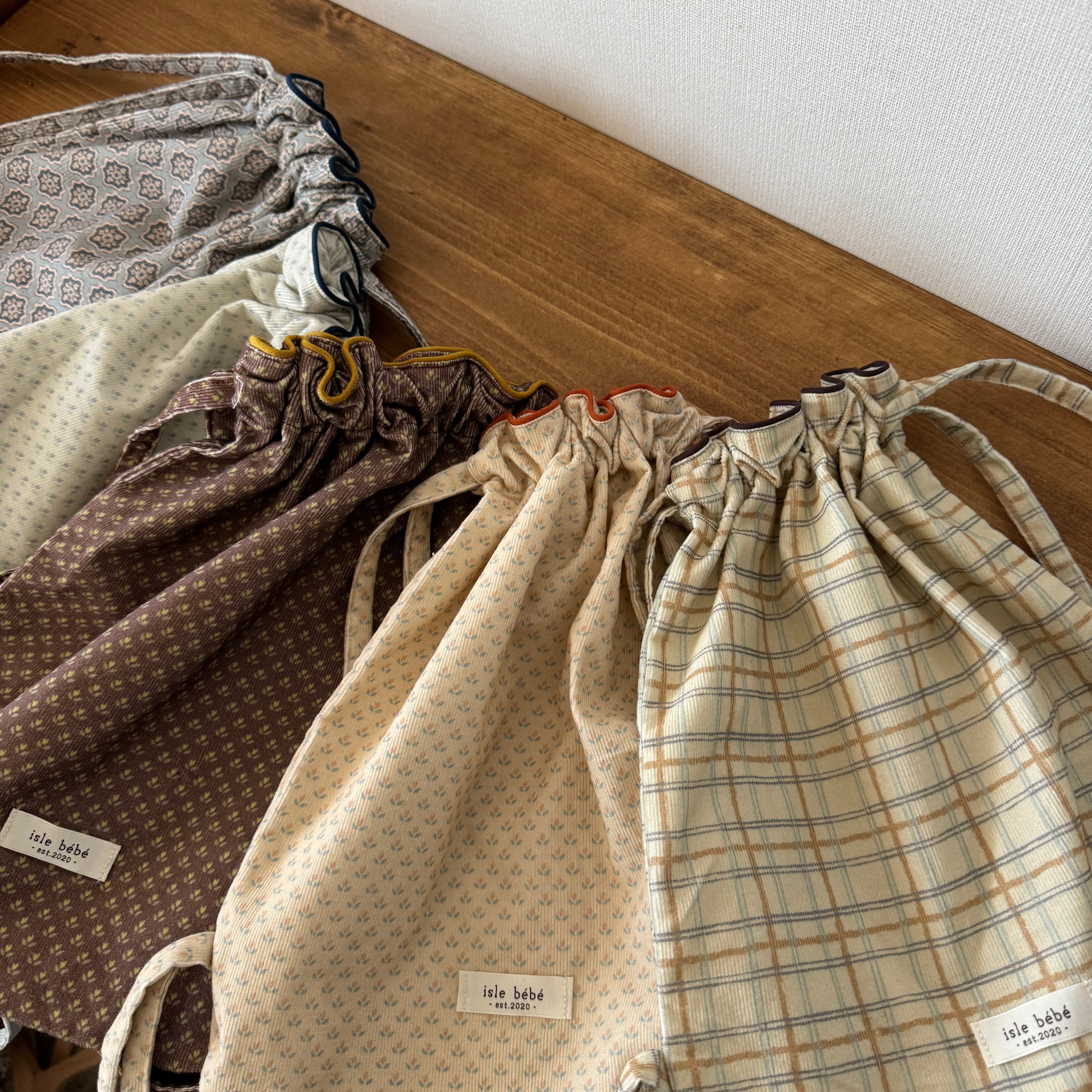 それぞれの生地に合わせた配色パイピングがかわいいアイテムです。